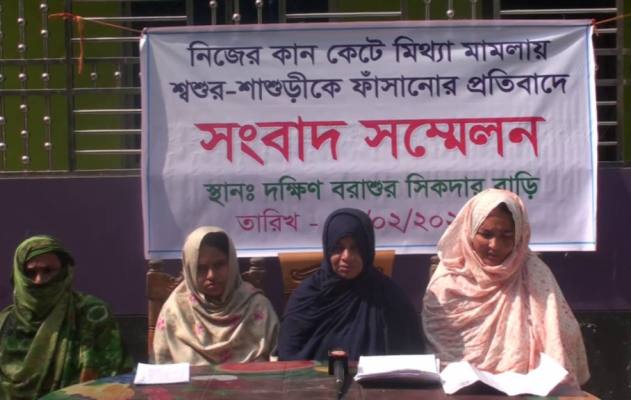 সংবাদ সম্মেলনে ভুক্তভোগী নারী আসমা বেগম বলেন, বিয়ের পর থেকে যৌতুকের জন্য তার মেয়ে মারুফাকে মারধর ও নিয্যাতন করতো জামাই রমাজান মোল্যা ও তার পরিবারের সদস্যরা। এরই মাঝে একটি পুত্র সন্তান হলেও থেমে থাকেনি নিয্যাতন। পরে বাচ্চাকে মায়ের কাছ থেকে নিয়ে গেলে পুলিশের মাধ্যমে তাকে উদ্ধার করা হয় এবং জামাই রমাজান মোল্যা ও তার পরিবারের সদস্যদের বিরুদ্ধে গোপালগঞ্জ আদালতে মামলা দায়ের করা হয়। এতে ক্ষিপ্ত হয়ে জামাই রমাজান মোল্যা নিজের কান কেটে গোপালগঞ্জ আদালতে একটি মিথ্যা মামলা দায়ের করে। এ মামলায় তার স্বামী সিরাজ সিকদারকে গ্রেপ্তার করে পুলিশ । তিনি(শ্বশুর) এখন জেলা কারাগারে রয়েছে। দ্রুত মিথ্যা মামলা প্রত্যাহার চেয়ে স্বামীর মুক্তি ও দোষীদের দৃষ্টান্তমূলক শাস্তির দাবী জানান ওই নারী।এ সংবাদ সম্মেলনে ভুক্তভোগী নারীর পরিবারের সদস্যরা ও বিভিন্ন গণ মাধ্যমের সংবাদকর্মীরা উপস্থিত ছিলেন।