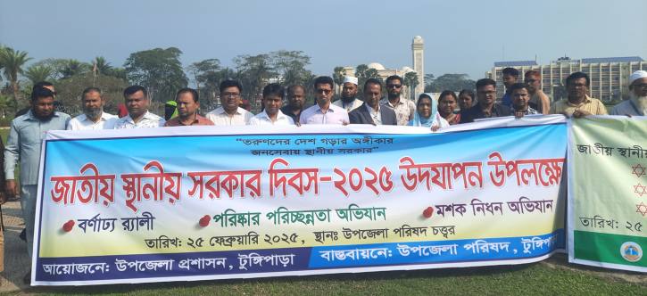 “তরুণদের দেশ গড়ার অঙ্গীকার জনসেবায় স্থানীয় সরকার” প্রতিপাদ্যকে সামনে রেখে গোপালগঞ্জের টুঙ্গিপাড়ায় জাতীয় স্থানীয় সরকার দিবস পালিত হয়েছে।দিবসটি উপলক্ষে আজ মঙ্গলবার (২৫ ফেব্রুয়ারী) সকাল ১০ টায় উপজেলা পরিষদ প্রাঙ্গণ থেকে একটি বর্ণাঢ্য শোভাযাত্রা বের করা হয়। শোভাযাত্রাটি উপজেলার বিভিন্ন গুরুত্বপূর্ণ সড়ক প্রদক্ষিণ করে পুনরায় সেখানে ফিরে আসে।