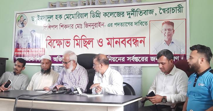 টুঙ্গিপাড়ায় ড. ইমদাদুল হক কলেজের অধ্যক্ষের পদত্যাগের দাবীতে মানববন্ধন ও সংবাদ সম্মেলন
