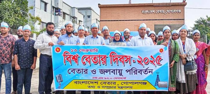 আজ বিশ্ব বেতার দিবস। এ বছর দিবসটির প্রতিপাদ্য ‘বেতার ও জলবায়ু পরিবর্তন”। দিবসটি উপলক্ষে বাংলাদেশ বেতার, গোপালগঞ্জ কেন্দ্রে দিনব্যাপী বিভিন্ন কর্মসূচি পালন করা হয়। এ উপলক্ষ্যে একটি র্যালী বেতার ভবন থেকে বের হয়ে বিভিন্ন সড়ক প্রদক্ষিন করে একই স্থানে গিয়ে শেষ হয়। পরে, বাংলাদেশ বেতার, গোপালগঞ্জ কেন্দ্রের সভাকক্ষে এক আলোচনা সভা অনুষ্ঠিত হয়।