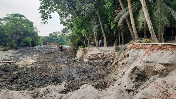 কোটালীপাড়ায় স্লুইস গেট নির্মাণে ব্যক্তি মালিকানাধীন জমি ও গাছপালা কাটার অভিযোগ