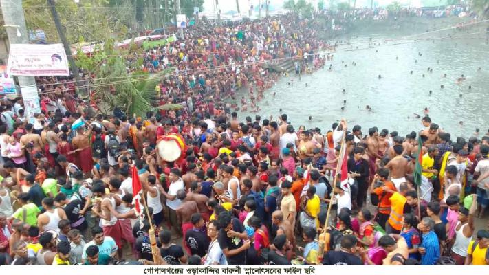 দশলক্ষাধিক মতুয়া ভক্তের অংশগ্রহণে অনুষ্ঠিত হবে গোপালগঞ্জের কাশিয়ানীর ওড়াকান্দিতে বারুনী স্নান উৎসব ও মেলা। মতুয়া মহাপুরুষ শ্রী শ্রী হরিচাঁদ ঠাকুরের জন্মতিথি উপলক্ষে এই স্নান উৎসব হয়ে আসছে প্রায় ২০০ বছর আগের থেকে। আজ বুধবার (২৬ মার্চ) রাত ১১টায় শুরু হবে এই স্নান। চলবে পরের দিন বৃহস্পতিবার (২৭ মার্চ) রাত ৯টা পর্যন্ত। দক্ষিণ-পশ্চিমাঞ্চলের মতুয়া সম্প্রদায়ের সর্ববৃহৎ মহাবারুনী স্নান উৎসব ও তিন দিনব্যাপী মেলা চলবে পরের দিন শুক্রবার ( ২৮ মার্চ) বিকেল পর্যন্ত। এবছর শ্রী শী হরিচাঁদ ঠাকুরের ২১৪তম জন্মতিথি। প্রতিবছর ফাল্গুন মাসের মধুকৃষ্ণা ত্রয়োদশী তিথিতে পাপ থেকে মুক্তি ও পূণ্য লাভের আশায় দেশের বিভিন্ন জেলা ছাড়াও ভারত, নেপাল সহ বিভিন্ন দেশ থেকে ১০ লাক্ষাধিক পূর্ণাথী অংশ নিবেন এ স্নান উৎসবে। এ উপলক্ষে ওড়াকান্দির ঠাকুর বাড়ীর আশাপাশ এলাকার অন্তঃত ৫ কিলোমিটার জুড়ে উৎসবের আমেজ বিরাজ করে থাকে।