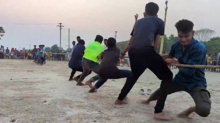 কাশিয়ানীতে অনুষ্ঠিত হল রশিটানা ও তৈলাক্ত গলাগাছ বাওয়াসহ গ্রামীণ নানান খেলাধুলা