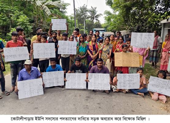 গোপালগঞ্জের কোটালীপাড়ায় জেলা পরিষদের অর্থায়ণে রাজাপুর-রামশীল খেয়াখাটের বরাদ্দকৃত ঘাটলা ইউপি সদস্যের বাড়িতে করা হয়েছে। এ দূর্নীতির ঘটনার অভিযোগে রামশীল ইউনিয়ন পরিষদের ৯নং ওয়ার্ডের সদস্য অবনী রায়ের পদত্যাগের দাবিতে সড়ক অবরোধ করে বিক্ষোভ মিছিল করেছে স্থানীয় জনসাধারণ।আজ শুক্রবার (৪ এপ্রিল) দুপুরে পয়সারহাট-পীড়ারবাড়ি সড়কের রাজাপুরে অবস্থান নেয় স্থানীয়রা।পরে সেখানে তারা এক ঘন্টা সড়ক অবরোধ করে বিক্ষোভ করে।এসময় ত্রিমুখী বাজার কমিটির সভাপতি কেশব তালুকদার, রামশীল ইউনিয়নের ৯নং ওয়ার্ডের বাসিন্দা সজীব তালুকদাররসহ অনেকে বক্তব্য রাখেন।
