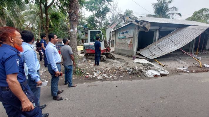 কালের খবরঃ গোপালগঞ্জে অবৈধ স্থাপনা উচ্ছেদ করা হয়েছে। আজ রবিবার (২০ এপ্রিল) সকালে জেলার টুঙ্গিপাড়া উপজেলার গোপালপুর বাজারের বাইন মার্কেটে অভিযান চালিয়ে সরকারি জায়গায় অবৈধ গড়ে তোলা ৫টি দোকান ভেঙ্গে গুড়িয়ে দেয় ভ্রাম্যমান আদালতের বিচারক ও নির্বাহী ম্যাজিস্ট্রেট রাসেল মুন্সী।ভ্রাম্যমান আদালতের বিচারক রাসেল মুন্সী জানিয়েছেন, গোপালপুর বাজার এলাকায় সরকারি ৩ দশমিক ৩১ শতাংশ জায়গা অবৈধ ভাবে দখল করে এলাকার ৫ ব্যাক্তি প্রভাব খাটিয়ে দোকানঘর তৈরী করে ব্যবসা প্রতিষ্ঠান গড়ে তোলেন। তাদের স্থাপনা সরিয়ে নেয়ার জন্য বার বার নোটিশ দেয়া হলেও ঘর সরিয়ে নেননি। আজ ভ্র্যাম্যমান আদালতের মাধ্যমে প্রায় ২লক্ষ ৩৯ হাজার ৪৩১টাকার ভূসম্পত্তি উদ্ধার করা হয়েছে।