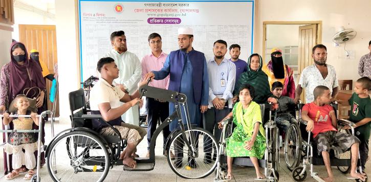 গোপালগঞ্জে ৯ প্রতিবন্ধী পেল হুইল চেয়ারসহ বিভিন্ন উপকরণ