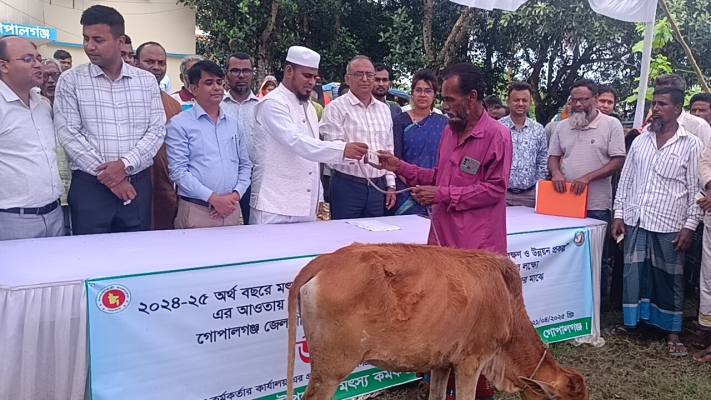 গোপালগঞ্জ সদর উপজেলায় দেশীয় মাছের প্রজনন রক্ষার্থে ও জেলেদের বিকল্প কর্মসংস্থান সৃষ্টির লক্ষ্যে ৭৫ জন জেলের মাঝে বকনা বাছুর বিতরণ করা হয়েছে। মৎস্য দপ্তরের বাস্তবায়নে দেশীয় প্রজাতির মাছ, শামুক সংরক্ষণ ও উন্নয়ন প্রকল্পের আওতায় এ বকনা বাছুর বিতরণ হয়।