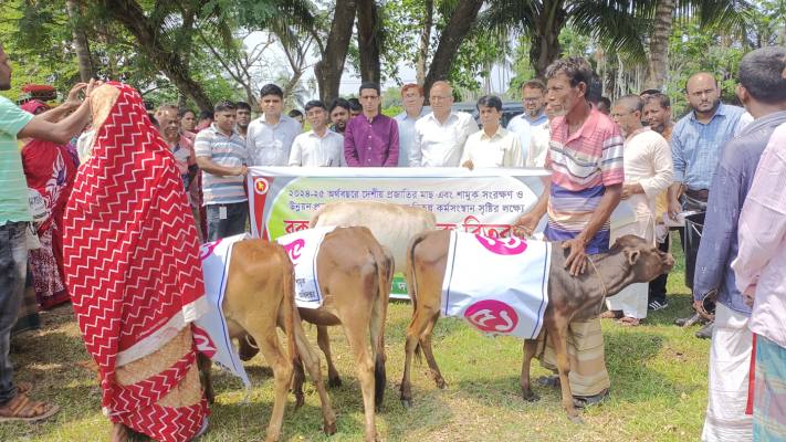 টুঙ্গিপাড়ায় জেলেদের বিকল্প কর্মসংস্থান সৃষ্টিতে বকনা বাছুর বিতরন