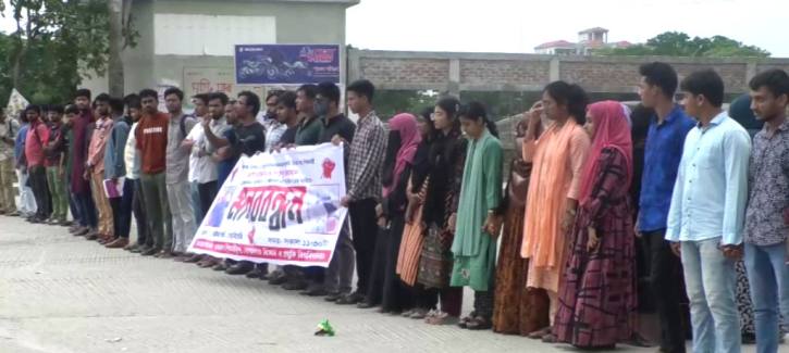 গোপালগঞ্জে সমন্বয়ক ও ছাত্র অধিকার পরিষদের দুই নেতার উপর হামলা ও মারপিট ঘটনার প্রতিবাদে মানববন্ধন কর্মসূচী পালন করেছে বিজ্ঞান ও প্রযুক্তি বিশ্ববিদ্যালয়ের সাধারণ শিক্ষার্থীরা। সোমবার (২১ এপ্রিল) দুপুরে বিশ্ববিদ্যালয়ের মূল ফটকের সামনে হাতে হাত ধরে ঘন্টাব্যাপী এ মানববন্ধন কর্মসূচী পালন করে তারা। এসময় হামলার প্রতিবাদে ও দোষীদের গ্রেপ্তারের দাবিতে বিভিন্ন ধরনের শ্লোগান দেন তারা।মানববন্ধন চলাকালে মার্কেটিং বিভাগের সোহেল আহমেদ, সিভিল ইঞ্জিনিয়ারিং বিভাগের জোবায়ের ফাহিম ও ইএসডি বিভাগের শোয়েব উদ্দিন বক্তব্য রাখেন।