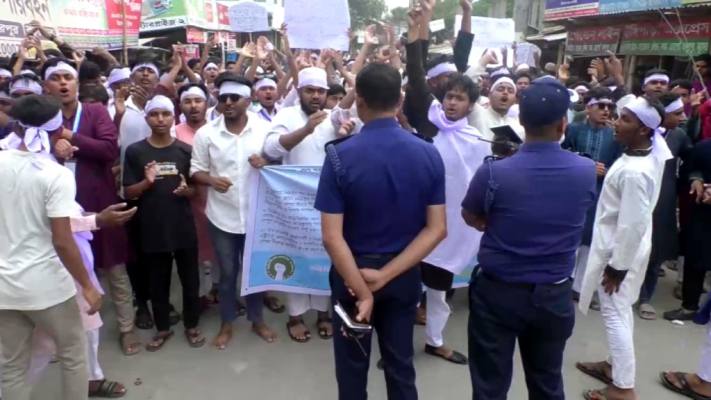 ছয় দফা দাবি আদায়ে মাথায় কাফনের কাপড় বেধে বিক্ষোভ মিছিল করেছেন গোপালগঞ্জ পলিটেকনিক শিক্ষার্থীরা।আজ শুক্রবার (১৮ এপ্রিল) জুমার নামাজের পর বেলা ৩টার দিকে পলিটেকনিক ইনস্টিটিউটের সামনে জড়ো হয় শিক্ষার্থীরা। পরে মাথায় কাফনের কাপড় বেধে একটি বিক্ষোভ মিছিল বের করে শিক্ষার্থীরা। মিছিলটি বিভিন্ন সড়ক ঘুরে সদর উপজেলার চন্দ্রদিঘলীয়া এলাকায় ঢাকা-খুলনা মহাসড়কের গিয়ে শেষ করে। এসময় সেখানে বসে দাবী আদায়ের লক্ষে বিভিন্ন শ্লোগান দেন আন্দোলনকারী শিক্ষার্থীরা।
