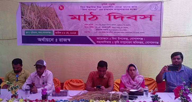 বিনা উদ্ভাবিত উচ্চ ফলনশীল বোরো ধানের জাত “বিনাধান-২৫” এর চাষাবাদ সম্প্রসানের লক্ষে গোপালগঞ্জে মাঠ দিবস অনুষ্ঠিত হয়েছে। জেলা কৃষি সম্প্রসারন অধিদপ্তরের সহযোগীতায় বিনা উপকেন্দ্র এ অনুষ্ঠানের আয়োজন করে।