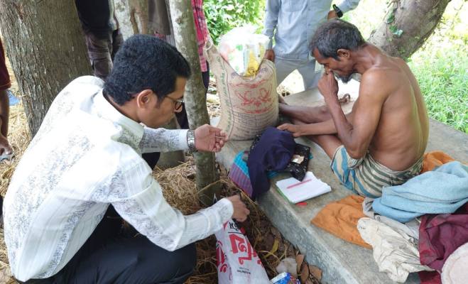 আজ বৃহস্পতিবার (৮মে) সকালে উপজেলা নির্বাহী অফিসার মোঃ মঈনুল হক পূর্বপাড়া গ্রামে বিমল হালদারের বাড়িতে যান। এসময় বিমল হালদারের বড় ভাই জগদিশ হালদারের হাতে চাল, ডালসহ বিভিন্ন খাদ্য সামগ্রী, পোষাক ও নগদ অর্থ তুলে দেন।