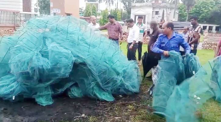 কোটালীপাড়ায় অবৈধ চায়নাদুয়ারী জাল পুড়িয়ে ধ্বংস