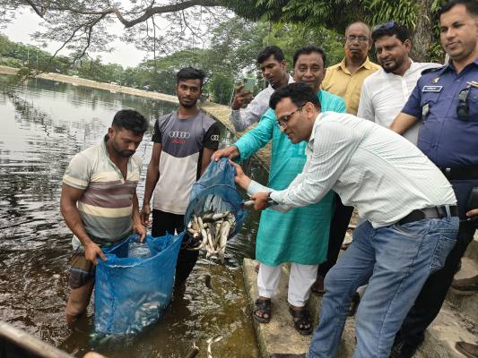 গোপালগঞ্জের কোটালীপাড়ায় দেশীয় প্রজাতির মাছ এবং শামুক সংরক্ষণ ও উন্নয়ন প্রকল্পের আওতায় মাদ্রাসা, মন্দিরসহ ১১টি প্রতিষ্ঠানের পুকুরে ৭শত ৮২ কেজি রুই,কাতলা,মৃগেল মাছের পোনা অবমুক্ত করা হয়েছে।