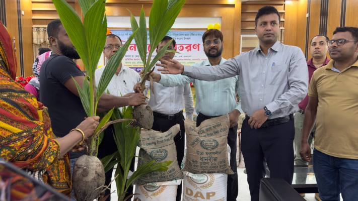 পরে অতিথিরা ৪শ’ জন প্রান্তিক কৃষকের হাতে প্রত্যেককে ৫ কেজি ধান বীজ, ১০ কেজি করে ডিএপি ও এমপি সার তুলে দেন। এছাড়া ৪০ জন কৃষকের মধ্যে পাঁচটি করে মোট ২শ’ লেবুর চারা ও  ১২০ টি প্রতিষ্ঠানে পাঁচটি করে মোট ৬শ’ নারিকেলের চারা বিনামূল্যে বিতরণ করা হয়।