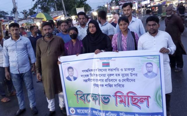 গণ অধিকার পরিষদের সভাপতি ও ঢাকা বিশ্ববিদ্যালয় ছাত্র সংসদের (ডাকসু) সাবেক ভিপি নুরুল হক নুরকে অবরুদ্ধ করে  হামলাকারীদের শাস্তির দাবিতে গোপালগঞ্জের টুঙ্গিপাড়ায় বিক্ষোভ মিছিল হয়েছে।