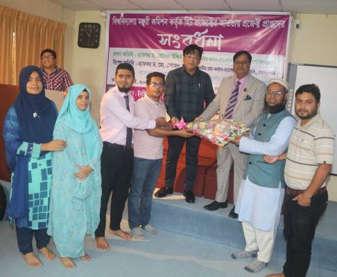 বাংলাদেশ বিশ্ববিদ্যালয় মঞ্জুরী কমিশন পরিচালিত ‘হায়ার এডুকেশন এক্সিলারেশন অ্যান্ড ট্রান্সফরমেশন (হিট) প্র্রকল্পের গবেষণা বরাদ্দ পাওয়ায় গোপালগঞ্জ বিজ্ঞান ও প্রযুক্তি বিশ্ববিদ্যালয়ের মার্কেটিং বিভাগের সভাপতি ড. মো. শামসুল আরেফিন এবং পরিবেশ বিজ্ঞান ও দুর্যোগ ব্যবস্থাপনা বিভাগের সভাপতি ড. মো. রাশেদুজ্জামানকে সংবর্ধনা দিয়েছে বিশ্ববিদ্যালয় প্রশাসন।