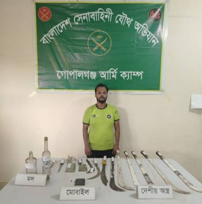 জানাগেছে,গোয়েন্দা তথ্যের ভিত্তিতে বৃহস্পতিবার ভোর রাতে নাহিদ হাসান অপুর বাড়িতে পুলিশ এবং সেনাবাহিনী যৌথ অভিযান চালিয়ে তাকে গ্রেপ্তার করে। অভিযানে তার বাসা থেকে ৮টি চাপাতি, একটি কুড়াল, ২টি ছোরা, ২টি কাস্তে, ২টি বিদেশী মদের বোতল ও একটি মোবাইল ফোন জব্দ করা হয়। কাশিয়ানী থানার ভারপ্রাপ্ত কর্মকর্তা (ওসি) কামাল হোসেন জানান, গ্রেপ্তার হওয়া যুবকের বিরুদ্ধে থানায় মামলা দায়ের শেষে আদালতের মাধ্যমে কারাগারে পাঠানো