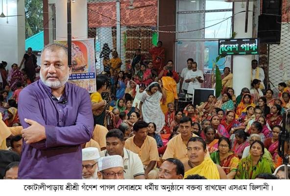 শ্রীশ্রী গণেশ পাগল সেবাশ্রম কমিটির সভাপতি মাইকেল হিরোহিত বিশ্বাসের সভাপতিত্বে অনুষ্ঠিত সভায় প্রফেসর কার্তিক চন্দ্র বিশ্বাস, উপজেলা বিএনপির সভাপতি এস এম মহিউদ্দিন, সাধারণ সম্পাদক আবুল বশার হাওলাদার, পৌর বিএনপির সভাপতি ইউসুফ আলী দাড়িয়া ও সাধারণ সম্পাদক ওয়ালিউর রহমান হাওলাদার বক্তব্য রাখেন আলোচনা সভা শেষে এস এম জিলানী সেবাশ্রম ঘুরে দেখেন এবং ভক্তদের সঙ্গে প্রসাদ গ্রহণ করেন।