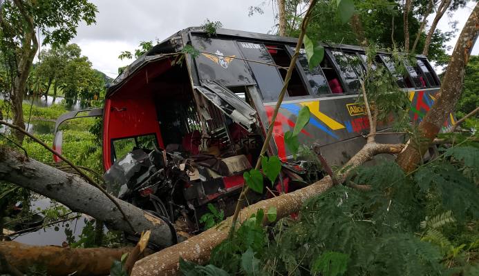 এ সময় বাসটি কাশিয়ানী উপজেলার পোনা এলাকায় পৌঁছালে চালক নিয়ন্ত্রণ হারিয়ে ফেললে সড়কের পাশে গাছের সাথে ধাক্কা লেগে খাদে পড়ে যায়। এতে ওই বাসের সামনের অংশ দুমড়ে মুচড়ে গেলে বাসে থাকা অন্তত ২০যাত্রী আহত হন। পরে খবর পেয়ে পুলিশ ও ফায়ার সার্ভিসের কর্মীরা ঘটনাস্থলে গিয়ে আহতদের উদ্ধার করে কাশিয়ানী উপজেলা স্বাস্থ্য কমপ্লেক্সে নিয়ে যায়। মারাত্মক আহত ১০ জনকে হাসপাতালে ভর্তি করা হয়েছে।