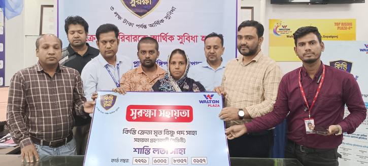 গোপালগঞ্জের টুঙ্গিপাড়া উপজেলার পাটগাতী বাজারের পান ব্যবসায়ী বিষ্ণুপদ সাহা। গত ৯ ফেব্রুয়ারি কিস্তিতে চৌরঙ্গির ওয়ালটন প্লাজা থেকে প্রায় ৩২ হাজার টাকার একটি মোবাইল ক্রয় করেন। কিন্তু চার কিস্তি পরিশোধ করার পর গত ৫ মে অসুস্থতাজনিত কারণে মারা যান বিষ্ণুপদ।এমন পরিস্থিতিতে “কিস্তি ক্রেতা ও পরিবার সুরক্ষা নীতি”-এর আওতায় নগদ আর্থিক সহায়তা প্রদান করেছে ওয়ালটন প্লাজা কর্তৃপক্ষ।