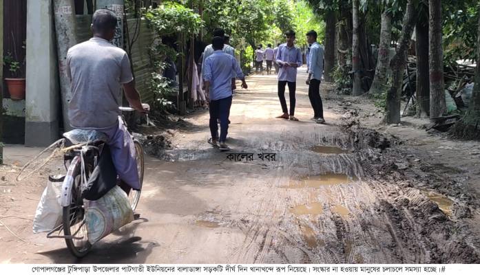 গোপালগঞ্জের টুঙ্গিপাড়া উপজেলার পাটগাতী ইউনিয়নের বালাডাঙ্গা এলাকার চলাচলের একটি মাত্র গুরুত্বপূর্ণ সড়ক। এই সড়কের বেহাল অবস্থায় চরম দুর্ভোগে পড়েছেন স্থানীয়রা। প্রায় ১০০ মিটারজুড়ে রাস্তাটি ভাঙাচোরা হয়ে খানা-খন্দে ভরে যাওয়ায় প্রতিদিনই ঝুঁকি নিয়ে চলাচল করছে দুইটি শিক্ষা প্রতিষ্ঠানের প্রায় ৪ শতাধিক শিক্ষার্থীসহ ২০ গ্রামের কয়েক হাজার মানুষ।