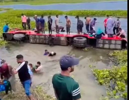 ভাঙ্গা হাইওয়ে থানার ভারপ্রাপ্ত কর্মকর্তা (ওসি) আবু সাঊদ মো খায়রুল আনাম  বিষয়টি নিশ্চিত করে জানান, উদ্ধার কাজ চলছে। এ পর্যন্ত কোনো মৃত্যুর খবর পাওয়া যায়নি। কয়েকজন যাত্রী সামান্য আহত হয়েছেন। উদ্ধার অভিযান শেষ হলে বিস্তারিত জানা যাবে।উল্লেখ্য, এর আগে একই দিন সকালে ঢাকা-খুলনা মহাসড়কের পোনা এলাকায় আরেকটি বাস নিয়ন্ত্রণ হারিয়ে গাছের সঙ্গে ধাক্কা খায়। সে ঘটনায় অন্তত ২০ জন যাত্রী আহত হন।