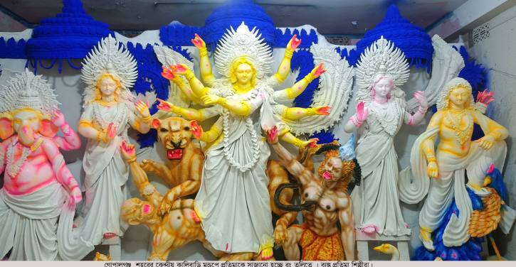 গোপালগঞ্জ শহরের বিভিন্ন মন্দির ঘুরে দেখা গেছে, প্রতিমা তৈরির কাজ এখন শেষ, এখন চলছে রং তুলির শেষ আঁচড়ে দেবী দুর্গা, লক্ষ্মী, গনেশ, কার্তিক এবং সরস্বতীর রূপে প্রতিমাগুলোর রঙিন রূপ ফুটিয়ে তোলার কাজ। প্রতিমা শিল্পীরা দিনরাত এক করে প্রতিমাগুলোর সৌন্দর্য চূড়ান্ত করছেন।
