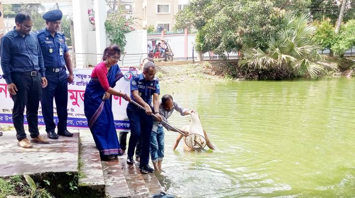 গোপালগঞ্জে প্রাতিষ্ঠানিক জলাশয়ে মাছের পোনা অবমুক্ত