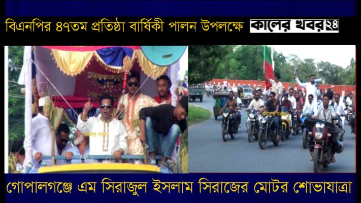 গোপালগঞ্জ জেলা বিএনপির সাবেক সভাপতি ও গোপালগঞ্জ-০২ আসনের মনোনয়ন প্রত্যাশী এম সিরাজুল ইসলাম সিরাজ দাবি করে বলেছেন, বিগত সময়ে গোপালগঞ্জে কখনো নির্বাচন বা ভোট হয়নি। তিনি বলেন, এখানে কোনো প্রকৃত উন্নয়ন হয়নি, যা হয়েছে তা কেবল ব্যক্তির উন্নয়ন। সিরাজ বলেন, ছাত্র-জনতা, ভাই-বোনেরা, এবার ঐক্যবদ্ধ হয়ে বিএনপির প্রার্থীকে ধানের শীষে ভোট দিয়ে নির্বাচিত করবেন এবং নির্বাচিত হলে গোপালগঞ্জে ব্যাপক উন্নয়ন করা হবে। আজ (০৫ সেপ্টেম্বর) বিকালে বাংলাদেশ জাতীয়তাবাদী দল বিএনপির ৪৭তম প্রতিষ্ঠা বার্ষিকী উপলক্ষে একটি মোটর শোভাযাত্রা শেষে এক সংক্ষিপ্ত সমাবেশে তিনি এসব কথা বলেন।