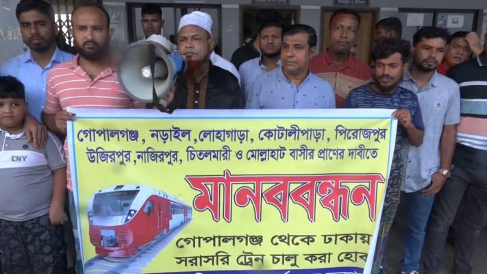 গোপালগঞ্জ-ঢাকা রু‌টে রেল চলাচলের দাবীতে মানববন্ধন