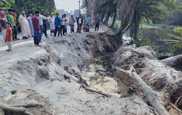 কোটালীপাড়ায় ড্রেজার দিয়ে খাল খনন, ভেঙে পড়ছে সড়ক, চলাচলে দুর্ভোগে শিক্ষার্থী ও গ্রামবাসী