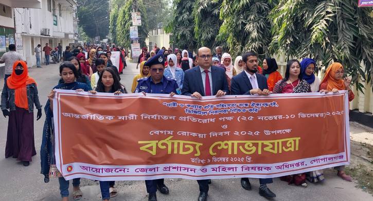 র্ণাঢ্য শোভাযাত্রা, আলোচনা সভা ও জয়ীতাদের সংবর্ধনা দেয়ার মধ্যদিয়ে গোপালগঞ্জে বেগম রোকেয়া দিবস পালিত হয়েছে। জেলা প্রশাসন ও মহিলা বিষয়ক অধিদপ্তর যৌথভাবে এ দিবসটি পালন করে।