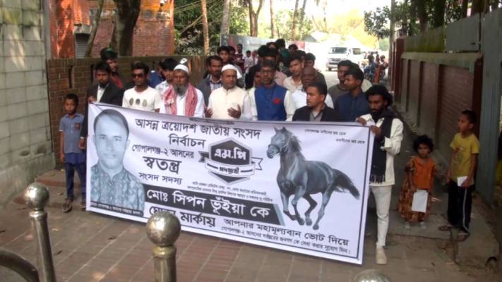 সন্ন ত্রয়োদশ জাতীয় সংসদ নির্বাচনে গোপালগঞ্জের টুঙ্গিপাড়ায় গওহরডাঙ্গা মাদ্রাসার প্রতিষ্ঠাতা আল্লামা শামসুল হক ফরিদপুরী ও বঙ্গবন্ধু শেখ মুজিবুর রমহানের কবর জিয়ারতের মধ্য দিয়ে নির্বাচনী প্রচারনা শুরু করেছেন গোপালগঞ্জ-০২ আসনের ঘোড়া প্রতীকের স্বতন্ত্রপ্রার্থী সিপন ভুইয়া।আজ রবিবার দুপুরে নির্বাচনী প্রচারণার প্রথম দিনে কর্মী সমর্থকদের সাথে নিয়ে প্রথমে আল্লামা শামসুল হক ফরিদপুরী ও পরে বঙ্গবন্ধু শেখ মুজিবুর রহমানের কবর জিয়ারত জিয়ারত করেন। এসময় বঙ্গবন্ধুর সমাধি সৌধের ৩নং গেট দিয়ে ভিতরে ঢুকে কবর জিয়ারত করতে চাইলেও পুলিশের বাঁধার মুখে গেটের পাশে দাঁড়িয়ে কবর জিয়ারত করেন তিনি। পরে তিনি নির্বাচনী প্রচারণার অংশ হিসোবে নির্বাচনী এলাকায় প্রচার প্রচারণা শুরু  করেন।এসময় সাংবাদিকদের বিভিন্ন প্রশ্নের জবাবে তিনি বলেন, আল্লামা শামসুল হক ফরিদপুরী ও বঙ্গবন্ধু শেখ মুজিবুর রমহানের কবর জিয়ারত করে নির্বাচনী প্রচারনা শুরু করলাম। আশা করি ভোটারা আমাকে ভোট দিয়ে নির্বাচিত করবেন। আমি এলাকার উন্নয়নের কাজ করতে চাই।