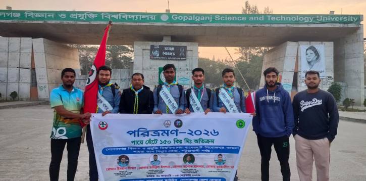 গোপালগঞ্জ বিজ্ঞান ও প্রযুক্তি বিশ্ববিদ্যালয়ের (গোবিপ্রবি) মেইন গেইট থেকে পায়রা তাপ বিদ্যুৎ কেন্দ্র, পটুয়াখালী পর্যন্ত ১৫০ কিলোমিটার পথ পায়ে হেঁটে অতিক্রমের উদ্দেশ্যে যাত্রা শুরু করেছেন চার রোভার স্কাউট।