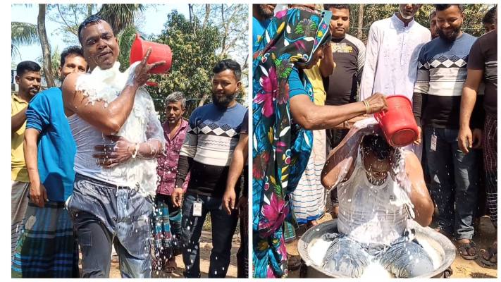 কোটালীপাড়ায় দুধ দিয়ে গোসল করে অনলাইন জুয়া খেলা ছাড়লেন এক যুবক