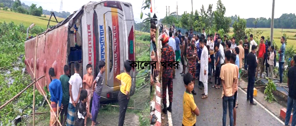 গোপালগঞ্জে চাকা ফেটে বাস খাদে। অল্পের জন্য প্রাণে বাঁচলো ২০ প্রাণ