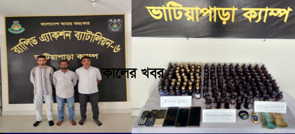 গোপালগঞ্জের কাশিয়ানীতে র‌্যাব-০৬ অভিযান চালিয়ে ১৭৯ বোতল ফেনসিডিল সাদৃশ্য নতুন মাদক উইনসেরেক্সসহ  তিন মাদক ব্যবসায়ীকে গ্রেপ্তার করেছে।আজ শনিবার (০৪ এপ্রিল) দুপুর পৌনে একটায় কাশিয়ানী উপজেলার মধুমতি সেতু টোল প্লাজা এলাকা থেকে মাদকসহ তাদের গ্রেপ্তার করা হয়।গ্রেপ্তাকৃতরা হলেন, সাতক্ষীরা সদর উপজেলার আলিপুর গ্রামের মোঃ আব্দুর রাজ্জাকের ছেলে মোঃ হাবিবুর রহমান বাপ্পী (৩৪), একই গ্রামের আসলাম হোসেনের ছেলে মোহাম্মদ শাহরিয়ার হোসেন (২৫) ও একই জেলার কলারোয়া উপজেলার ভাদিয়ালি গ্রামের মোঃ সামসুল হকের ছেলে মোঃ তরিকুল ইসলাম (৪২)।