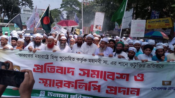 কালের খবরঃ ভারতের মহারাষ্ট্রে হিন্দু পুরোহিত মহানবী হযরত মুহাম্মদ (সা.) কে নিয়ে কটুক্তি এবং পরবর্তীতে বিজেপি নেতা(সাংসদ) নিতেশ রানে সমর্থন করে বিদ্বেষ ছড়ানোর প্রতিবাদে গোপালগঞ্জে মানববন্ধন, বিক্ষোভ সমাবেশ কর্মসূচী পালন