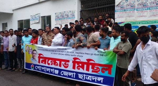 কালের খবরঃ ঢাকার মিটফোর্ডে পাশবিক কায়দায় সোহাগ হত্যাকাণ্ড এবং দেশব্যাপী চলমান চাঁদাবাজি, ধর্ষণ ও হত্যার প্রতিবাদে গোপালগঞ্জের বিভিন্ন শিক্ষা প্রতিষ্ঠানে বিক্ষোভ মিছিল ও সমাবেশ করেছে শিক্ষার্থীরা। গোপালগঞ্জ মেডিকেল কলেজ, গোপালগঞ্জ
