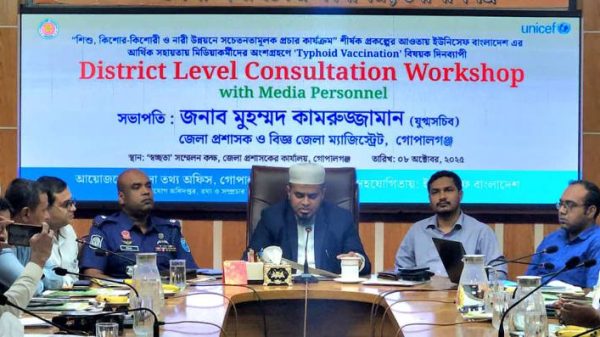 কালের খবরঃ সারা দেশের মতো গোপালগঞ্জেও শুরু হয়েছে টাইফয়েড টিকাদান ক্যাম্পেইন কর্মসূচী। জেলা সিভিল সার্জন অফিস এই টিকাদান কর্মসূচীর আয়োজন করে। আজ রবিবার (১২ অক্টোবর) সকালে জেলা প্রশাসন স্কুল অ্যান্ড
