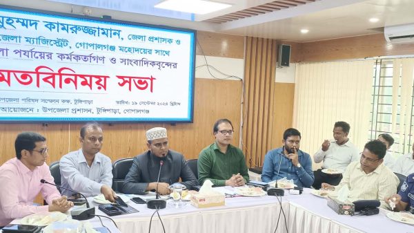 টুঙ্গিপাড়া প্রতিনিধিঃ গোপালগঞ্জের নতুন জেলা প্রশাসক মুহম্মদ কামরুজ্জামানের সাথে টুঙ্গিপাড়া উপজেলায় কর্মরত বিভিন্ন কর্মকর্তা ও সাংবাদিকবৃন্দের সাথে মতবিনিময় সভা অনুষ্ঠিত হয়েছে। আজ বৃহস্পতিবার (১৯ সেপ্টেম্বর) বিকালে টুঙ্গিপাড়া উপজেলা পরিষদ