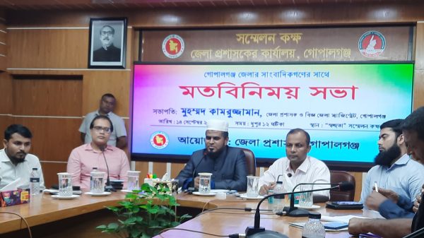 কালের খবরঃ গোপালগঞ্জে ঈদ এ মিলাদুন্নবী উপলক্ষে আলোচনা সভা ও দোয়া মাহফিলের অনুষ্ঠিত হয়েছে।আজ সোমবার(১৬ সেপ্টেম্বর)দুপুরে জেলা প্রশাসনের উদ্যোগে এই অনুষ্ঠানের আয়োজন করা হয়। জেলা প্রশাসকের কার্যালয়ের সম্মেলন কক্ষে অনুষ্ঠিত