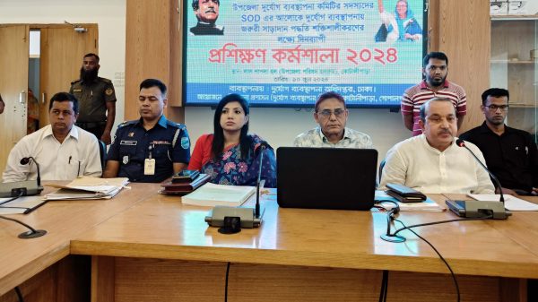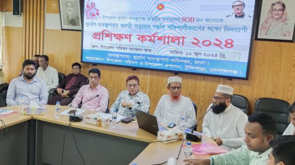 টুঙ্গিপাড়া প্রতিনিধিঃ গোপালগঞ্জের টুঙ্গিপাড়ায় দুর্যোগ ব্যবস্থাপনায় জরুরী সাড়াদান পদ্ধতি শক্তিশালী করনের লক্ষ্যে দিনব্যাপী প্রশিক্ষণ কর্মশালা অনুষ্ঠিত হয়েছে।সোমবার (১০জুন) বেলা ১১ টায় উপজেলা পরিষদ সম্মেলন কক্ষ বজ্রকন্ঠে এ প্রশিক্ষণ কর্মশালার আয়োজন