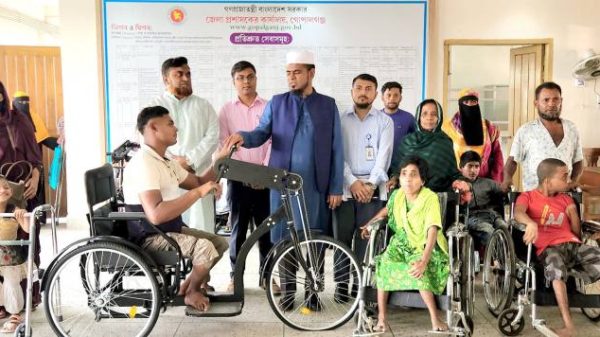 কালের খবরঃ গোপালগঞ্জে নয়জন প্রতিবন্ধী পেল হুইল চেয়ারসহ বিভিন্ন উপকরণ । গোপালগঞ্জ প্রতিবন্ধী সেবা ও সাহায্য কেন্দ্র এসব উপকরণ বিতরণ করে। আজ মঙ্গলবার (২৯ এপ্রিল) দুপুরে জেলা প্রশাসকের কায্যালয় চত্ত্বরে