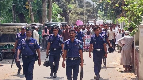 কালের খবরঃ ব্যাপক পুলিশ পাহারায় গোপালগঞ্জে “মার্চ ফর গাজা” কর্মসূচীর অংশ হিসাবে মানববন্ধন, বিক্ষোভ মিছিল ও সমাবেশ করেছে সাধারন শিক্ষার্থীরা। আজ রবিবার(১৩ এপ্রিল) দুপুরে স্থানীয় প্রেস ক্লাবের সামনে বিভিন্ন শিক্ষা