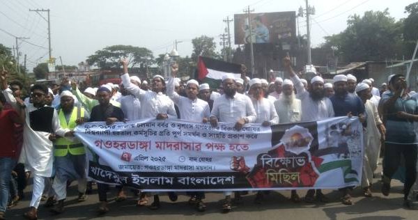 টুঙ্গিপাড়া প্রতিনিধি ফিলিস্তিনের গাজায় মুসলমানদের উপর ইসরায়েলি বাহিনীর চলমান হামলা ও গণহত্যার প্রতিবাদে গোপালগঞ্জের টুঙ্গিপাড়ায় বিক্ষোভ মিছিল অনুষ্ঠিত হয়েছে।আজ সোমবার (৭ এপ্রিল) বাদ যোহর উপজেলার জামিয়া ইসলামিয়া দারুল উলুম খাদেমুল