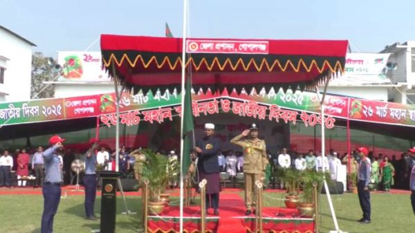 কালের খবরঃ নানা কর্মসূচী পালনের মধ্য দিয়ে গোপালগঞ্জে মহান স্বাধীনতা দিবস ও জাতীয় দিবস উদযাপন করা হয়েছে।আজ বুধবার সকালে সকল সরকারী, আধা সরকারী,স্বায়ত্ব শাসিত এবং বেসরকারী ভবনে জাতীয় পতাকা উত্তোলন,সূর্যোদয়ের