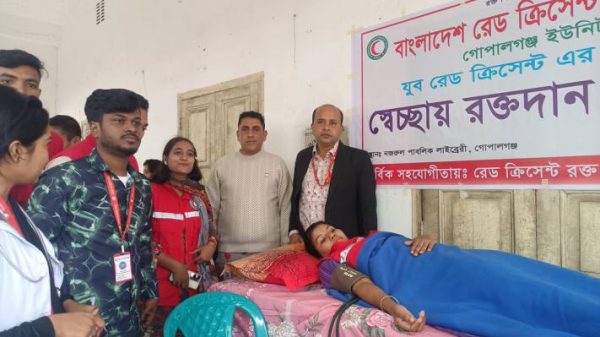 কালের খবরঃ গোপালগঞ্জে বাংলাদেশ রেড ক্রিসেট সোসাইটির জেলা ইউনিটের যুব রেড ক্রিসেন্টের উদ্যোগে দিনব্যাপী স্বেচ্ছায় রক্তদান কর্মসূচী অনুষ্ঠিত হয়েছে।রেড ক্রিসেন্ট রক্তদান কেন্দ্রের সহযোগীতায় এ কর্মসূচী পালিত হয়। আজ শনিবার (৩০