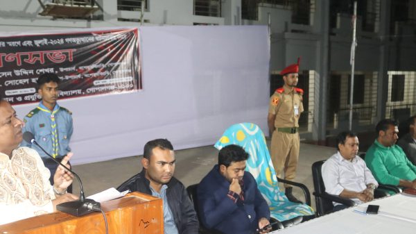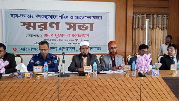কালের খবরঃ ছাত্র-জনতার গণঅভ্যুত্থানে শহিদ ও আহতদের স্মরেণে গোপালগঞ্জে স্মরণ সভা অনুষ্ঠিত হয়েছে।আজ বুধবার (২৭ নভেম্বর) সকাল সাড়ে ৯ টায় সদর উপজেলা পরিষদ হল রুমে জেলা প্রশাসন এ সভার আয়োজন